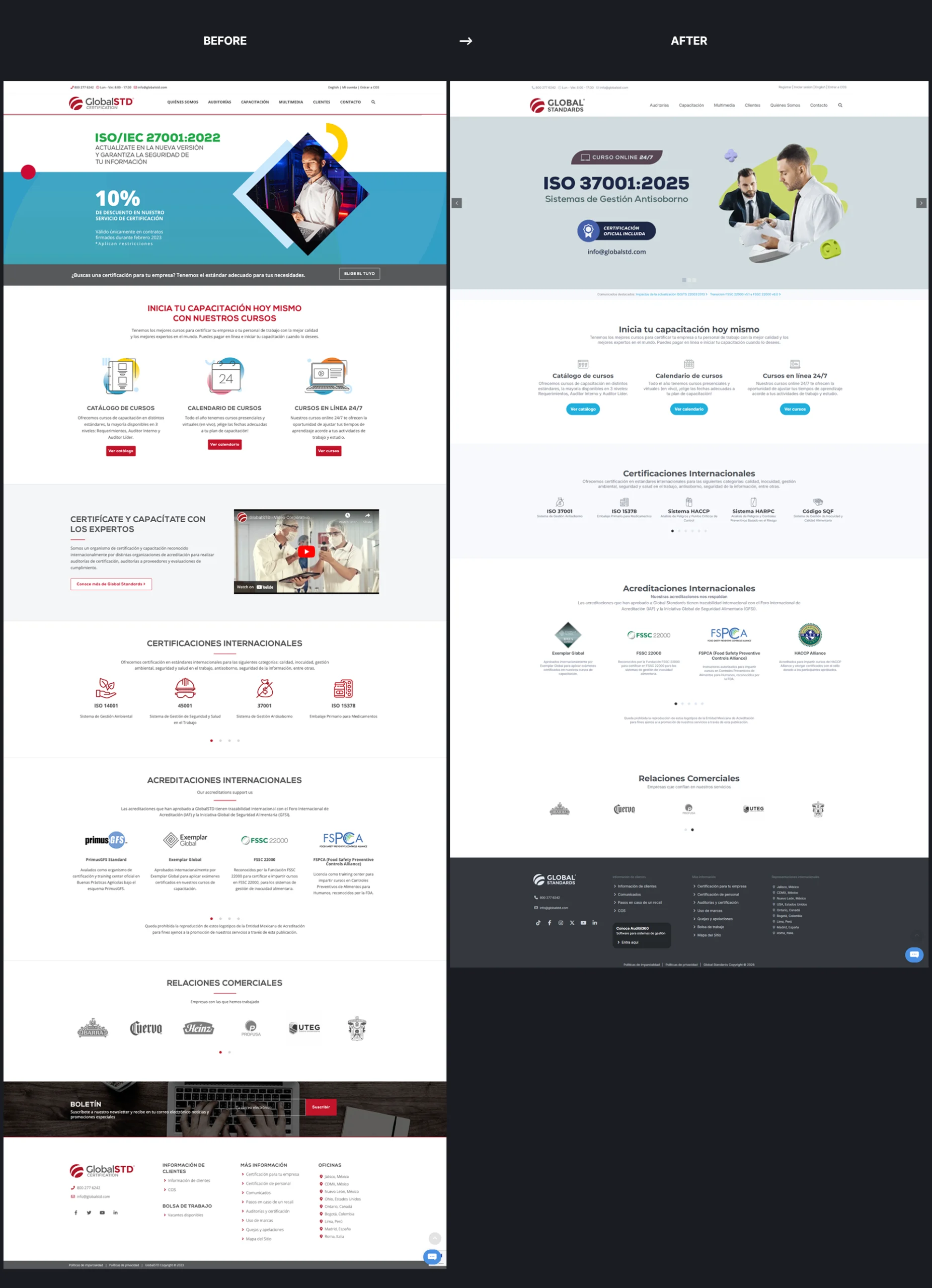 Design and continuous evolution of the Global Standards corporate website, improving performance, usability, and visual quality while supporting the company’s training, certification, and auditing services.